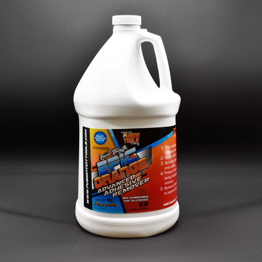 Αυτό το προηγμένο απορρυπαντικό κόλλας έχει σχεδιαστεί ειδικά για την αυτοκινητοβιομηχανία και τη βιομηχανία μεμβρανών. Έχουμε αναπτύξει αυτό το απορρυπαντικό για να αφαιρεί αποτελεσματικά τις κόλλες από μεμβράνες, προστατευτικά χρώματος (PPF) και βινύλιο. Απλά ψεκάστε την εκτεθειμένη κόλλα και παρακολουθήστε πώς το Fusion Epic Orange διαλύει την κόλλα για εύκολο καθαρισμό. Για ακόμη μεγαλύτερη οικονομία, μπορείτε να το αραιώσετε μέχρι 50/50 με νερό. Έχουμε δημιουργήσει την πιο συμπυκνωμένη φόρμουλα απομάκρυνσης κόλλας που μπορούμε να προσφέρουμε, προσφέροντας ισχυρή απόδοση χωρίς αμμωνία, αλκοόλ ή φορμαλδεΰδη. Επίσης, δεν περιέχει λάδια που θα μπορούσαν να εμποδίσουν μελλοντικές εγκαταστάσεις. Διατίθεται σε τρεις βολικές συσκευασίες: 3.78 Λίτρα , μπουκάλι ψεκασμού 946ml και μπουκάλι ψεκασμού 89ml κατάλληλο για ταξίδια.